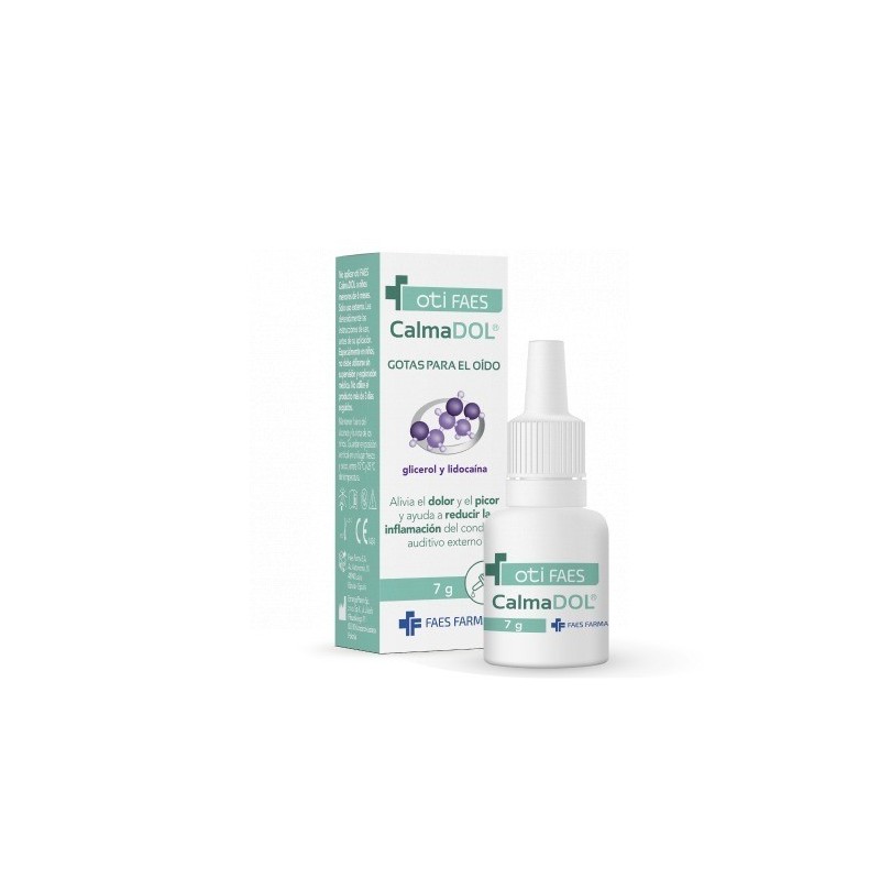 Oti FAES CalmaDOL Gotas para el Oído es un producto sanitario diseñado para aliviar el dolor y el picor del conducto auditivo externo. Su fórmula contiene glicerol y lidocaína al 0,5%, proporcionando un efecto protector y calmante. El glicerol, con sus propiedades osmóticas, ayuda a reducir la inflamación al eliminar el agua de los tejidos inflamados. La lidocaína, un anestésico local, potencia el alivio del dolor, asegurando un confort rápido y duradero.