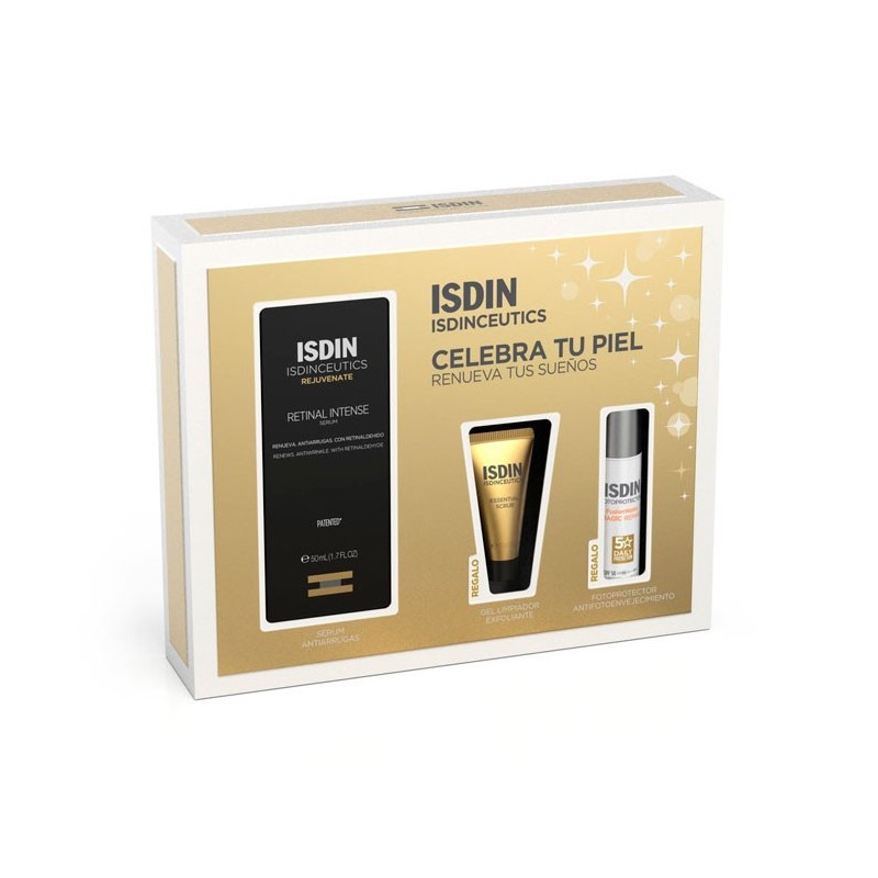 El isdinceutics cofre rutina renovación combina tres esenciales para transformar la piel: retinal intense, un potente sérum renovador nocturno que suaviza arrugas y mejora la textura, un gel limpiador que purifica sin resecar y deja la piel preparada para el tratamiento, y un fotoprotector facial que protege frente al fotoenvejecimiento y mantiene la piel uniforme y luminosa. Una rutina completa para renovar, cuidar y proteger la piel cada día